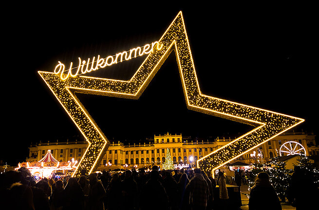 Luces festivas, música navideña y el castillo más bonito de Viena como telón de fondo: ¡la Navidad en el parque del palacio de Schönbrunn es especialmente mágica!