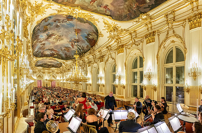 L'Orangerie Schönbrunn offre l'ambiente ideale, dato che gli imperatori asburgici hanno sempre organizzato qui festeggiamenti con un programma musicale di contorno.